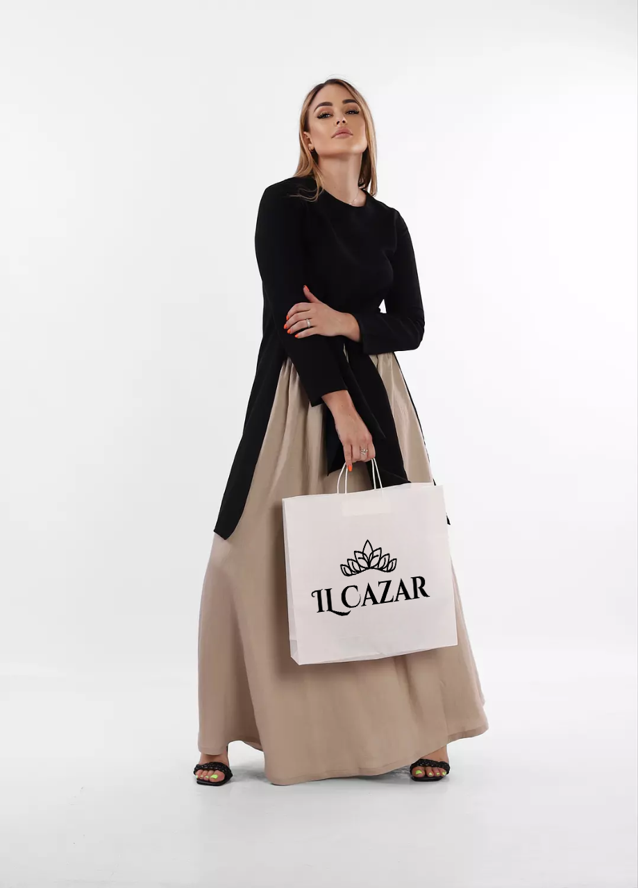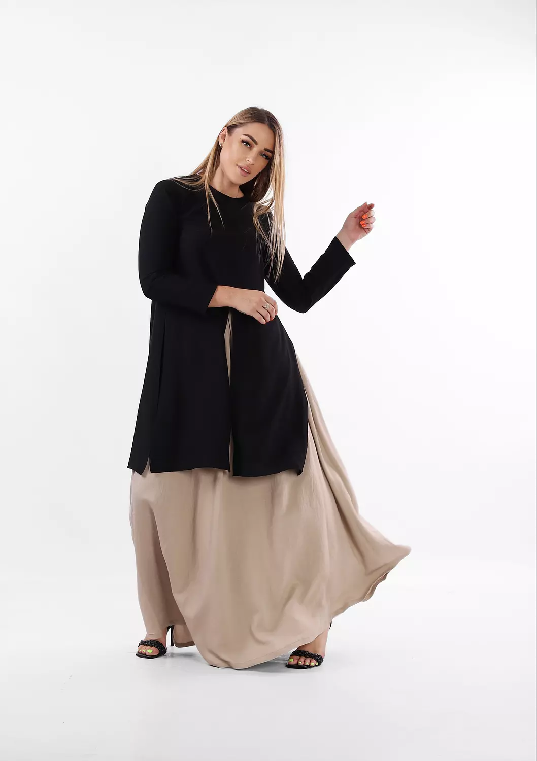 linen set, 2-piece linen outfit, slit dress, black linen top, beige linen skirt, summer modest set, modern linen outfit, unique design dress