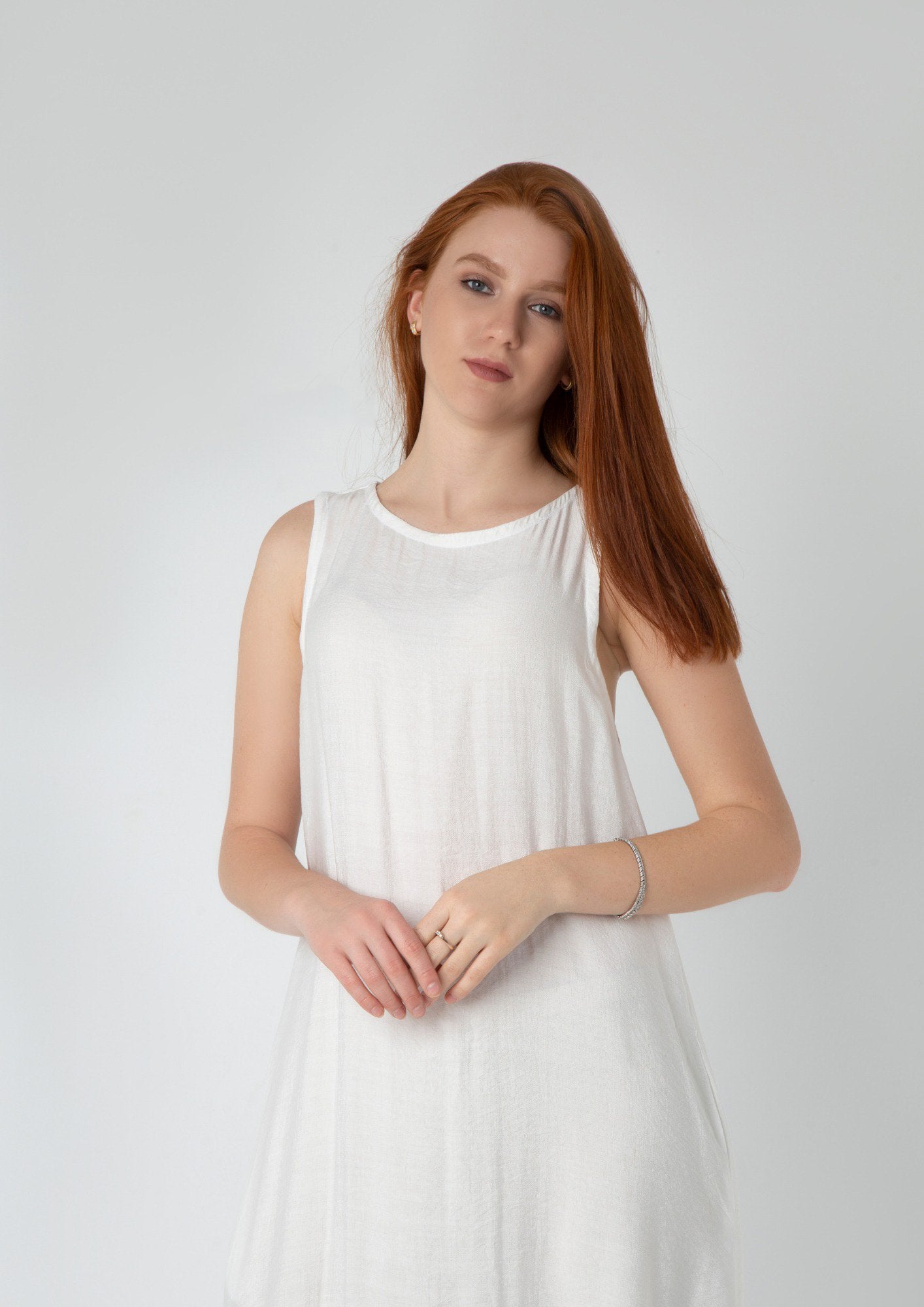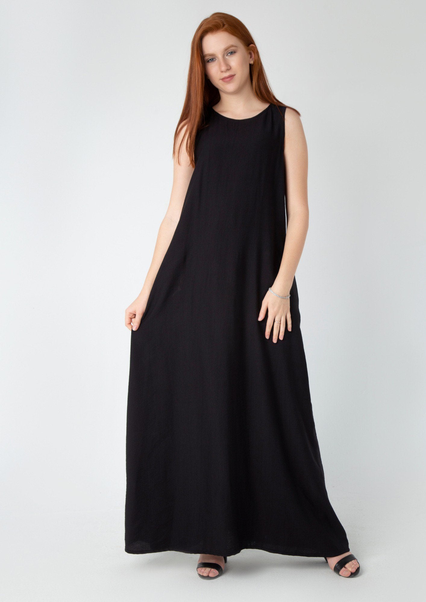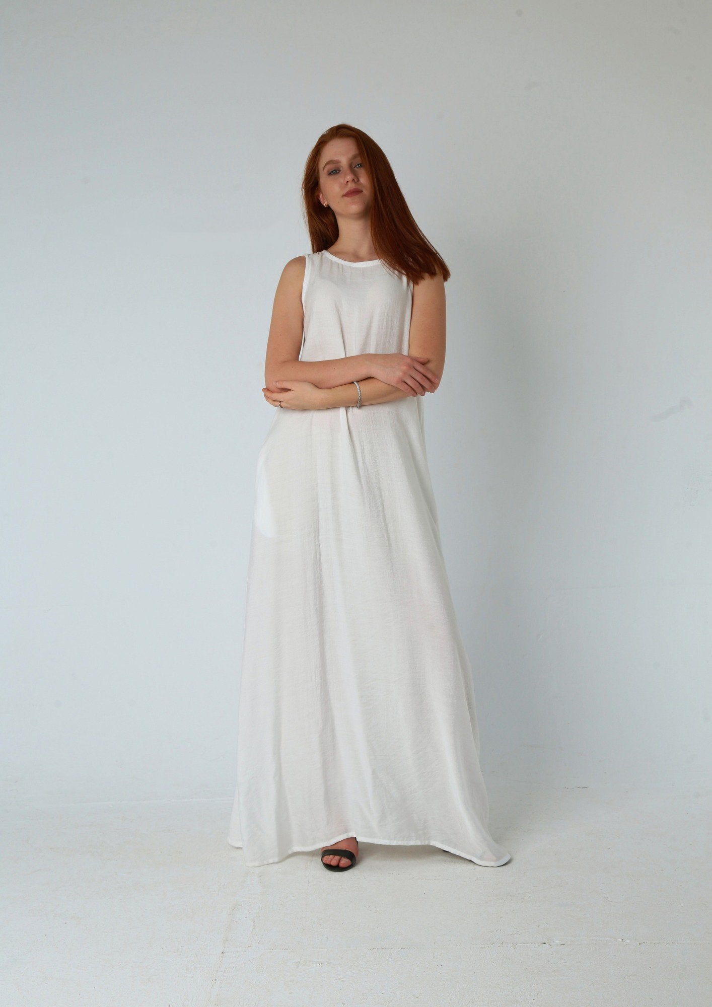 👗 A simple linen dress in either white or black with functional side pockets