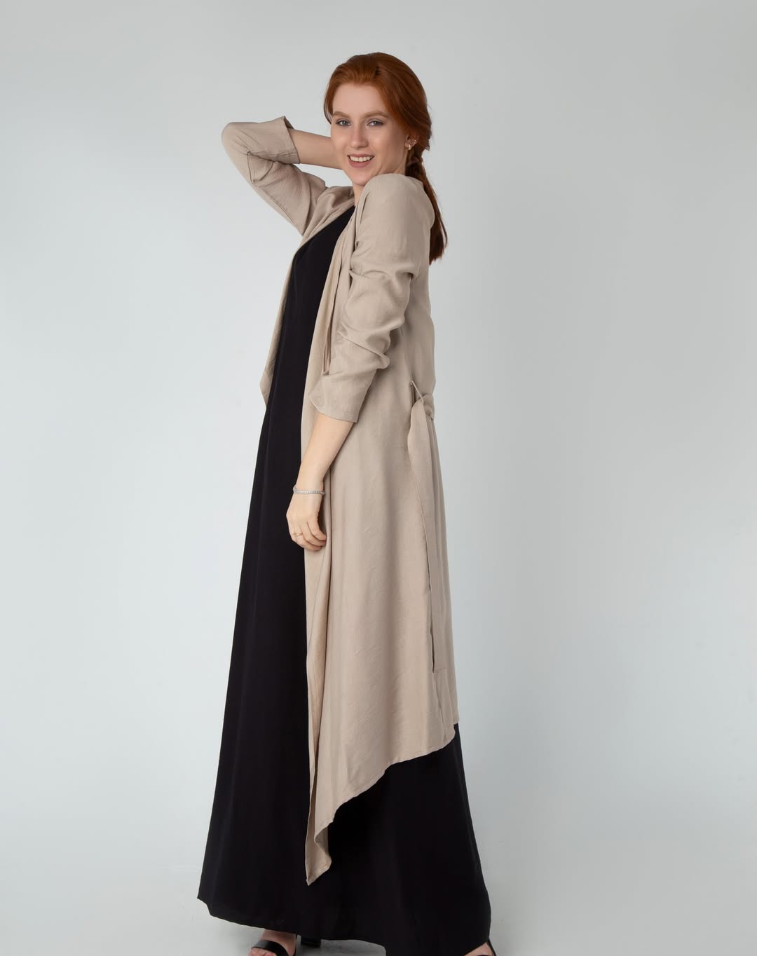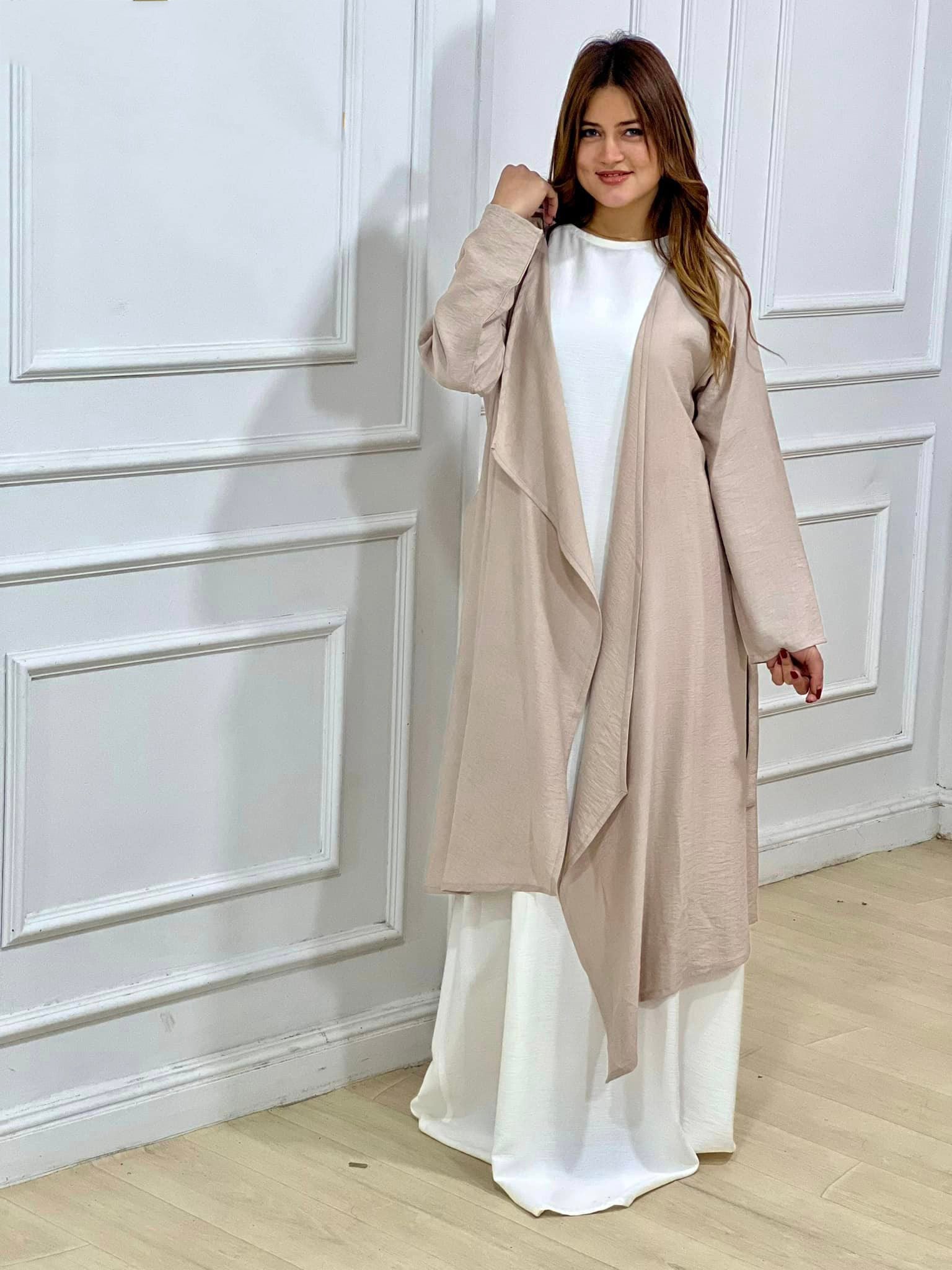 🧥 A lightweight, long cardigan available in beige or navy for a classy layering look