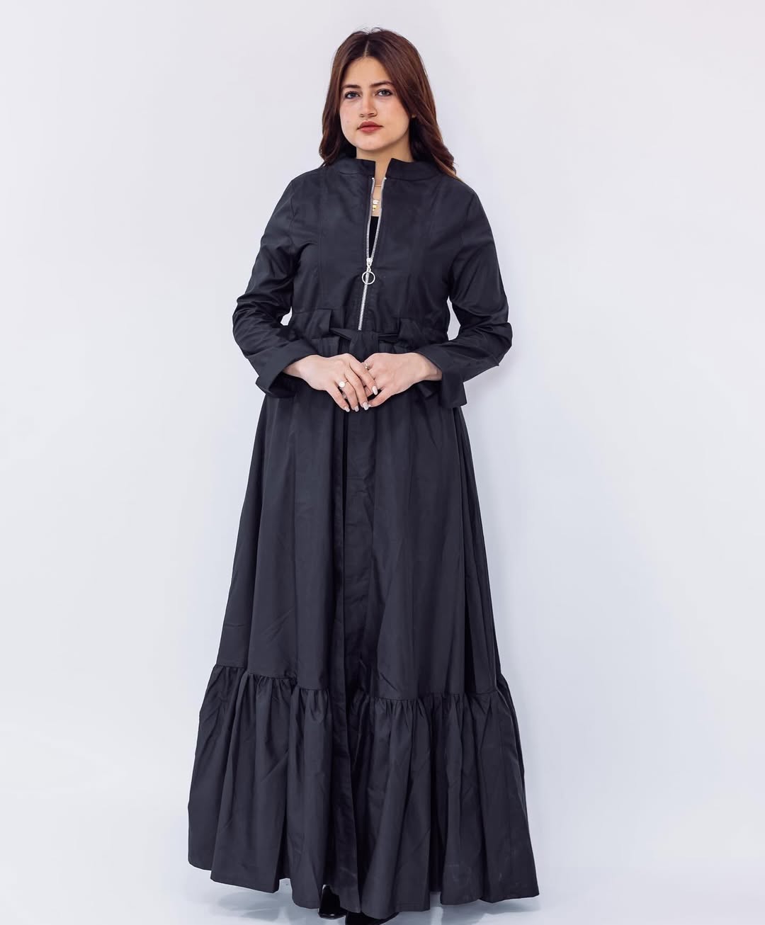 Step into confident elegance with this long dress made from premium Varna fabric – soft, structured, and perfect for everyday chic.