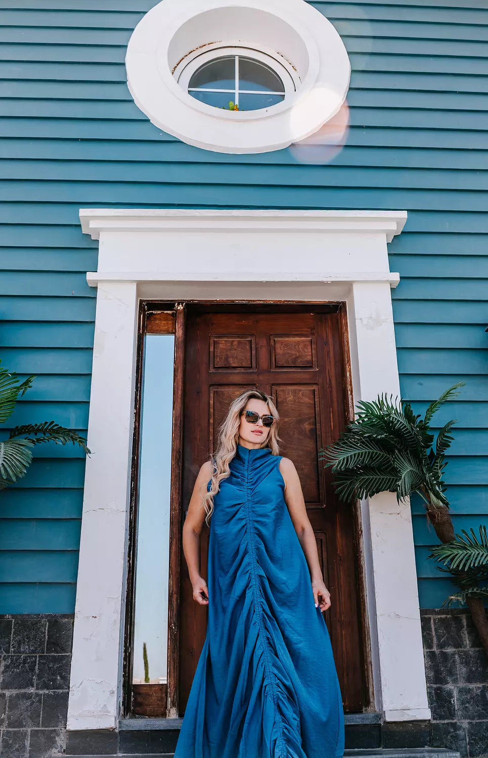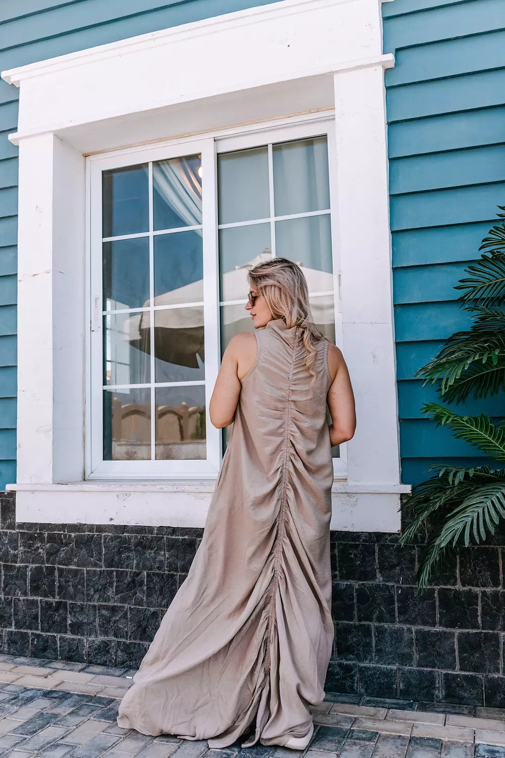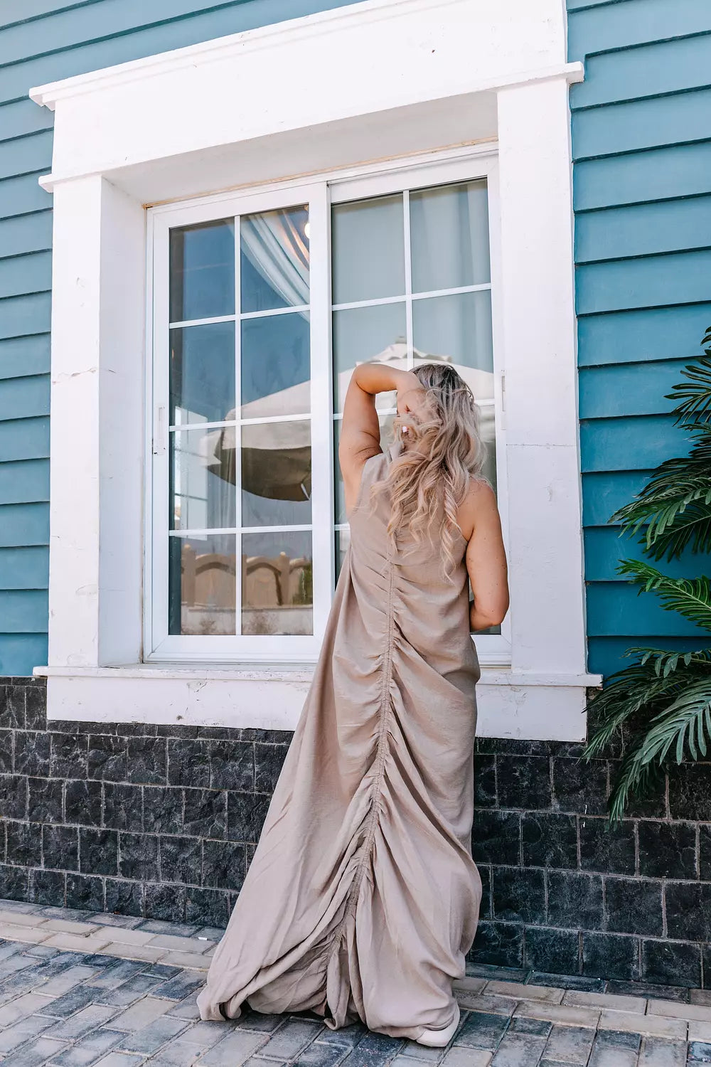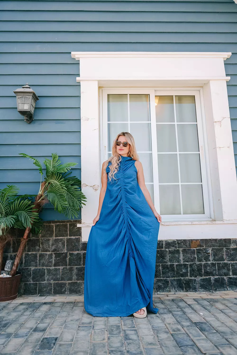 Ruched Maxi Linen Dress